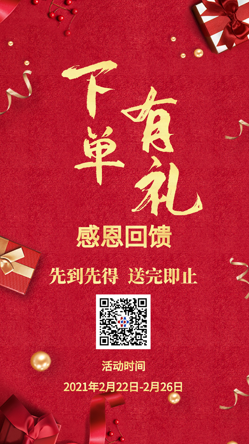 此次推出的“下单即送神秘礼品”活动,将于2021年2月22日至2月26日进行,欢迎广大客户积极参与!