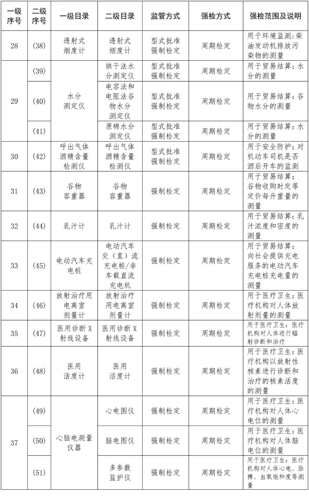 检定——国家强制检定:计量基准器;计量标准器;用于贸易结算、安全防护、医疗卫生、环境监测的工作计量器具共62种。