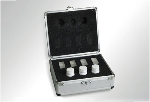 阿贝折射仪标准块是用来检定阿贝折射仪的计量标准器具。标准块组由轻冕玻璃QK1、冕玻璃K9、火石玻璃F2、重火石玻璃ZF2四种优质光学玻璃材料加工制成的长方形块组成。