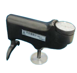 3.将被检百分表式邵氏硬度计放进横臂下方固定板的豁口内,表面面向检定人员,调整被检表前后位置,使被检表的压针对准检定仪测量头凹点,然后逆时针旋转固定长螺钉,直至硬度计被固定好,调整横臂左右、上下位置(上下位置需调节立柱升降螺母,使被检表压针距检定仪测量头凹点处约1-2mm),使被检表对准检定仪测量头凹头,即用横臂右方把手锁紧横臂。进口日本得乐牌邵氏硬度计和百分表式邵氏硬度计一样装夹。