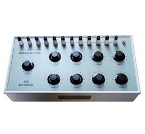 第一部分由8只十进盘可调电阻串联而成,即:10×(1000M+100M+10M+1M+100K+10K+1K+100)Ω。