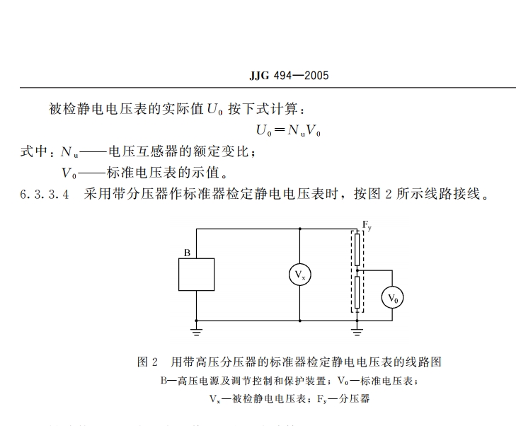 2检定静电表各个量程时,高压电源调节设备应保证电压由零值调到上量限并能平稳、连续地调到静电电压表的任何一个分度线,其调节细度应不低于10分之1K%(K为被检静电电压表准确度等级的数值)。