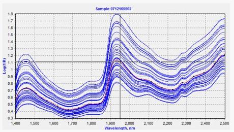 近红外光谱仪工作原理是,如果样品的组成相同,则其光谱也相同,反之亦然。如果我们建立了光谱与待测参数之间的对应关系(称为分析模型),那么只要测得样品的光谱,通过光谱和上述对应关系,就能很快得到所需要的参数数据。
