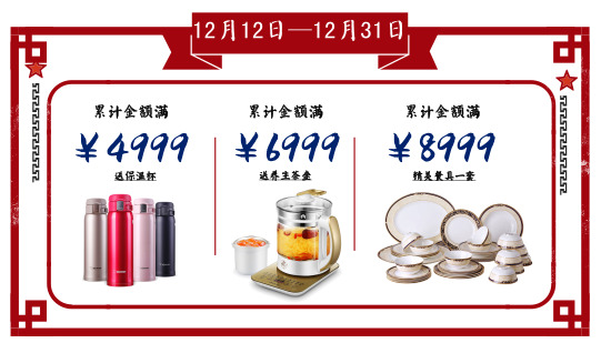 第二重:累计满送好礼,多满多送,活动时间:12月12日至12月31日。