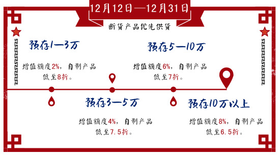 第三重:预存送温暖:增值+优惠折扣,比放在银行都划算,活动时间:12月12日至12月31日。