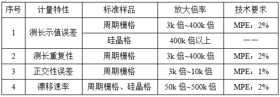 仪器在校准过程中需要考虑的环境条件包括温度:(20±5)℃,湿度:≤70%RH,其中,实验室震动和电磁辐射应不影响测量结果。而仪器的校准项目所采用的标准样品是周期栅格、硅晶格等,可根据计量特性、仪器测量范围和实际使用情况选用相适应的标准样品。