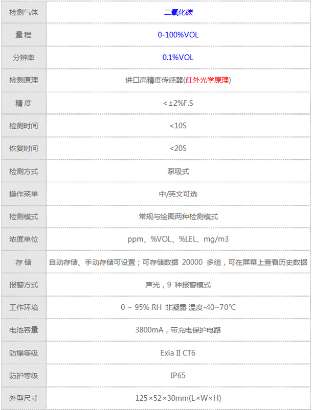 BL05型 便携式气体检测仪的相关指标参数: