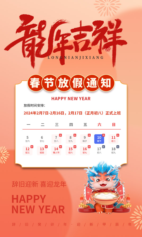 龙年新春佳节来临之际,根据国家有关规定,现将2024年春节放假事项通知如下: