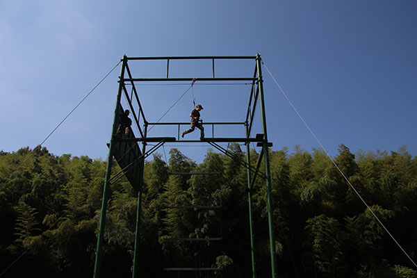 高空断桥”。队员将爬上一个8米高的断桥,从一端跳到另一端并返回。
