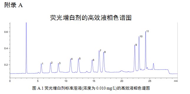 本方法规定了食用菌、大米、小麦粉和小麦粉制品、淀粉和淀粉制品中11种二苯乙烯类阴离子型荧光增白剂的高效液相色谱测定方法。11种荧光增白剂包括荧光增白剂24、荧光增白剂71、荧光增白剂85、荧光增白剂90、荧光增白剂113、荧光增白剂210、荧光增白剂220、荧光增白剂264、荧光增白剂353、荧光增白剂357、荧光增白剂5bm。